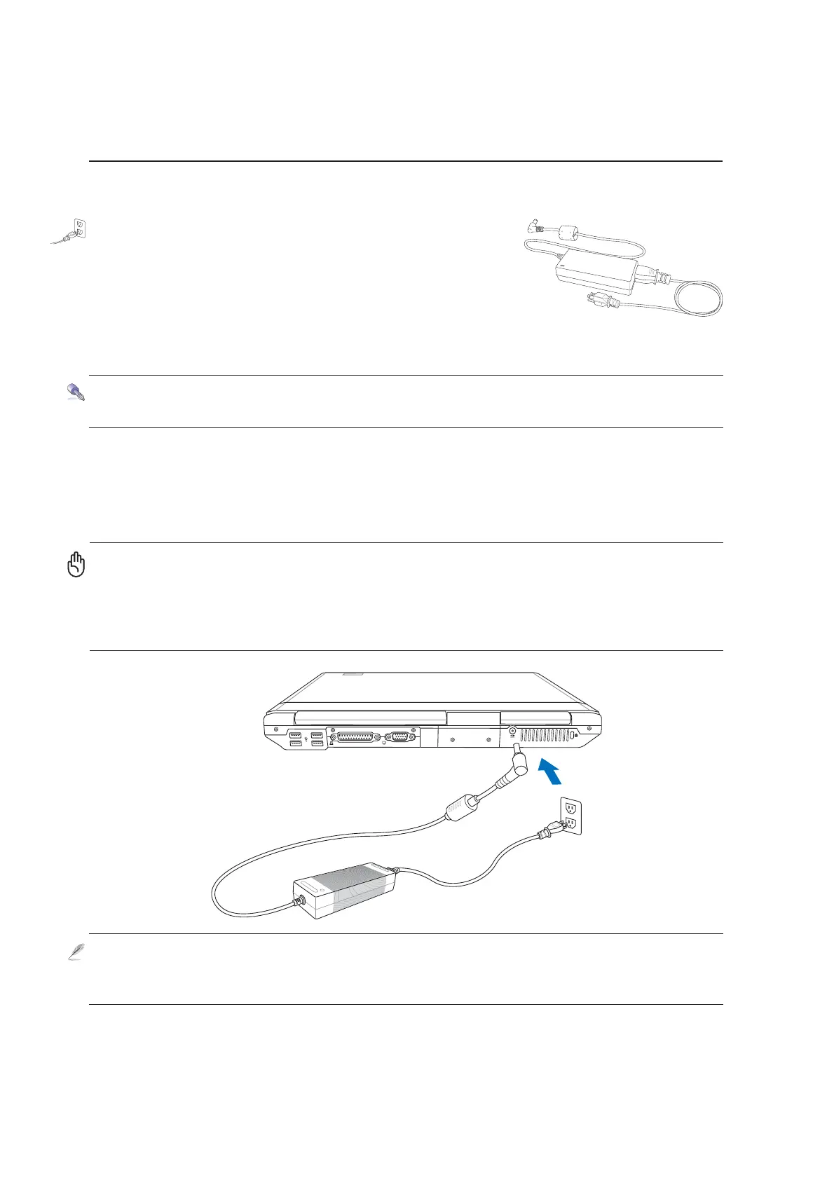 (preferably with surge-protection) and then connect the DC plug to the Notebook PC. Connecting the