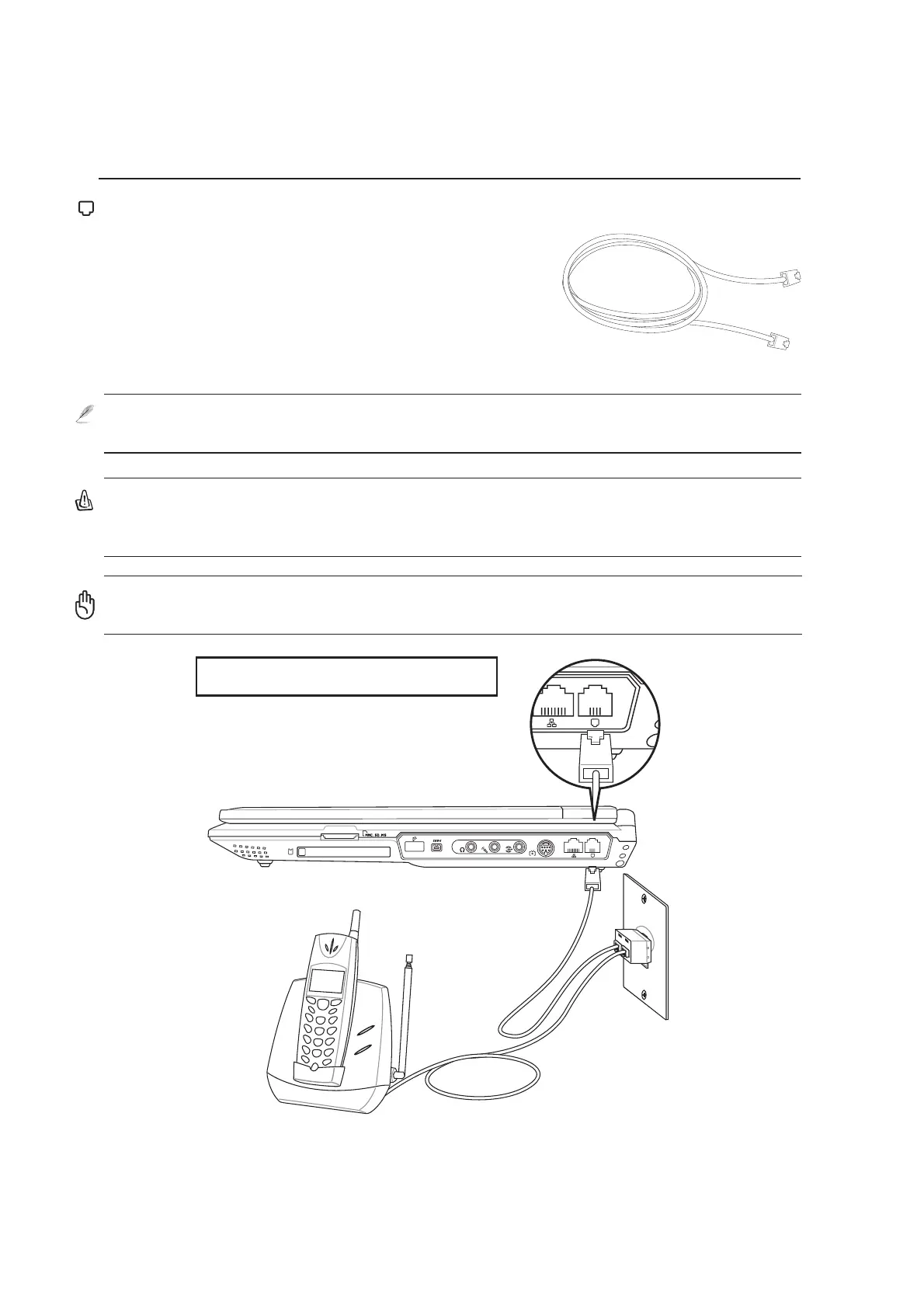 The telephone wire used to connect the Notebook PC’s internal