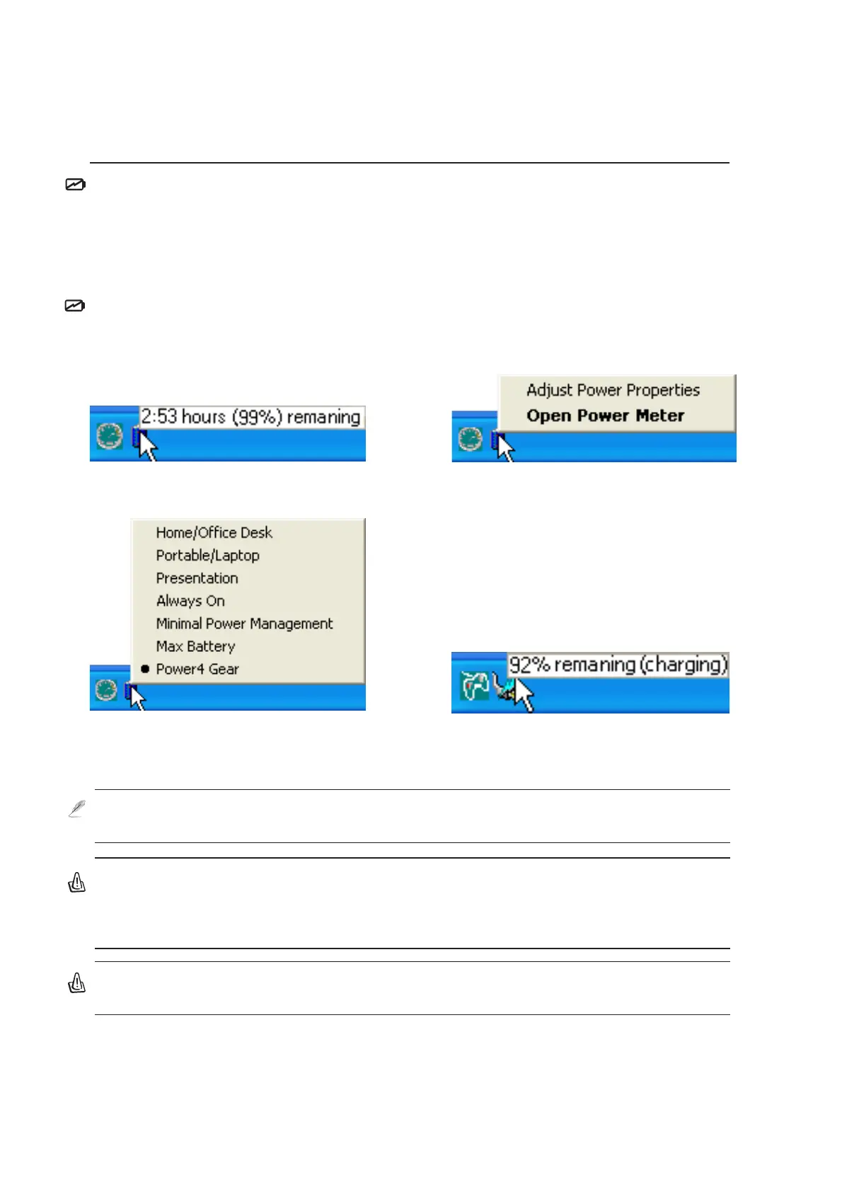 “battery” when not using AC power and a “plug” when using AC power. Double click on the icon for