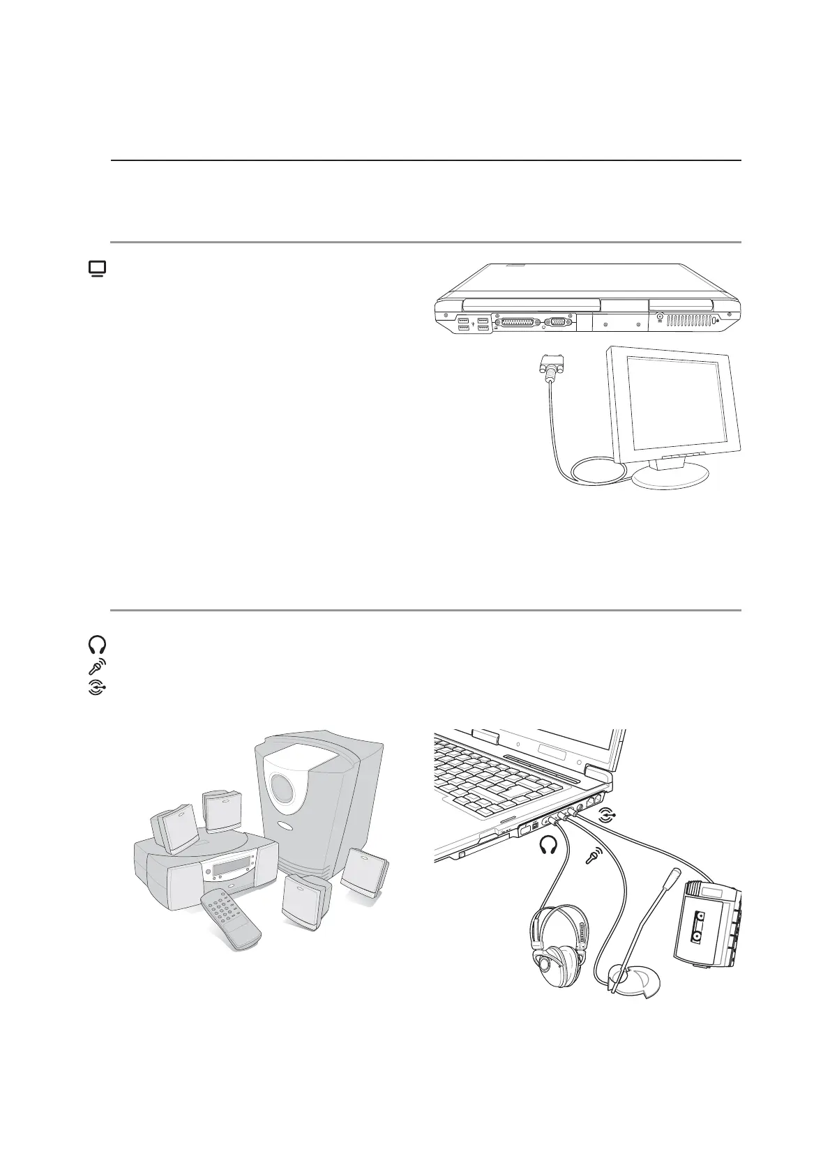 The Notebook PC provides easy access for connecting a stereo headphone or a multi-speaker system,
