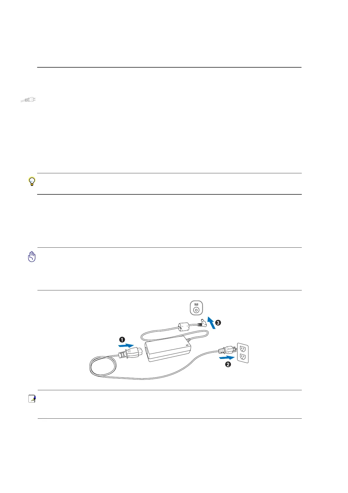(preferably with surge-protection) and then connect the DC plug to the Notebook PC. Connecting the