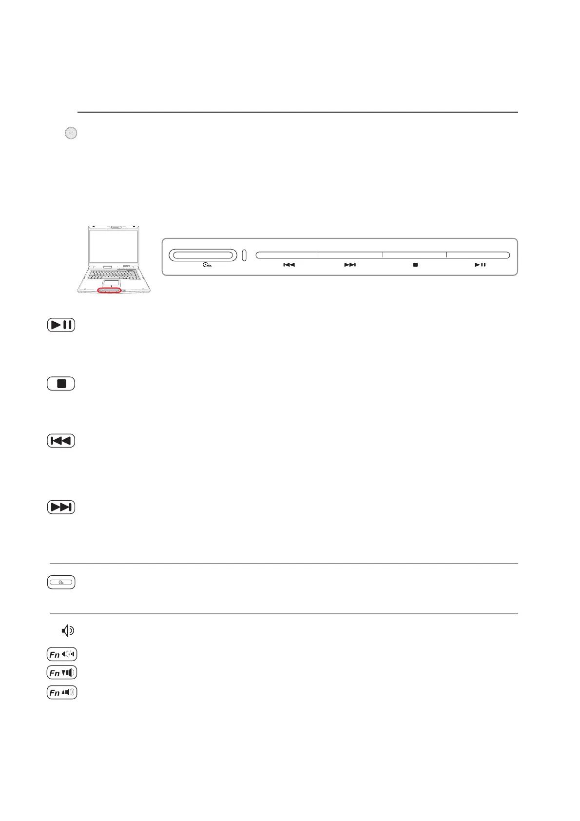 playing. The buttons activate and control your operating system’s audio player when the Notebook PC