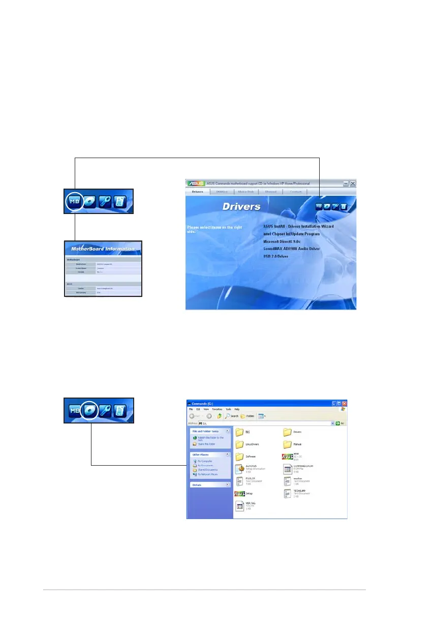 motherboard and the contents of the support DVD. Click an icon to display the