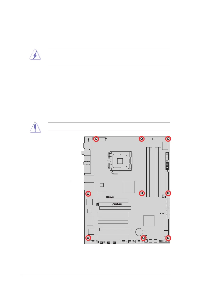 Do not overtighten the screws! Doing so can damage the motherboard.