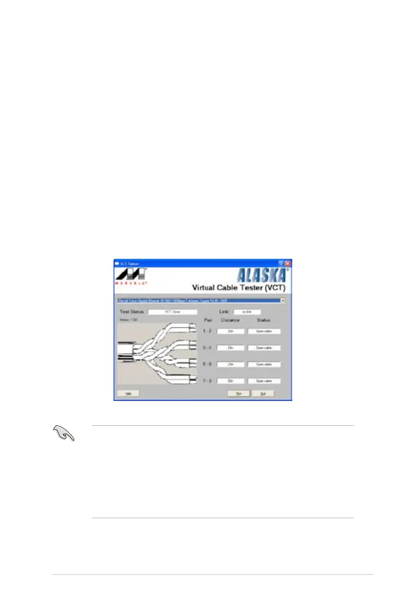 • The VCT utility only tests Ethernet cables connected to Gigabit LAN port(s).