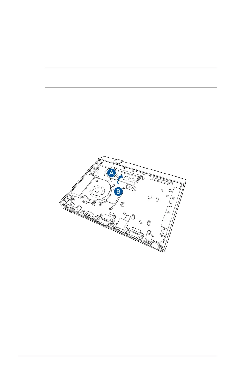 2. Align and insert the memory module into the slot (A) and press