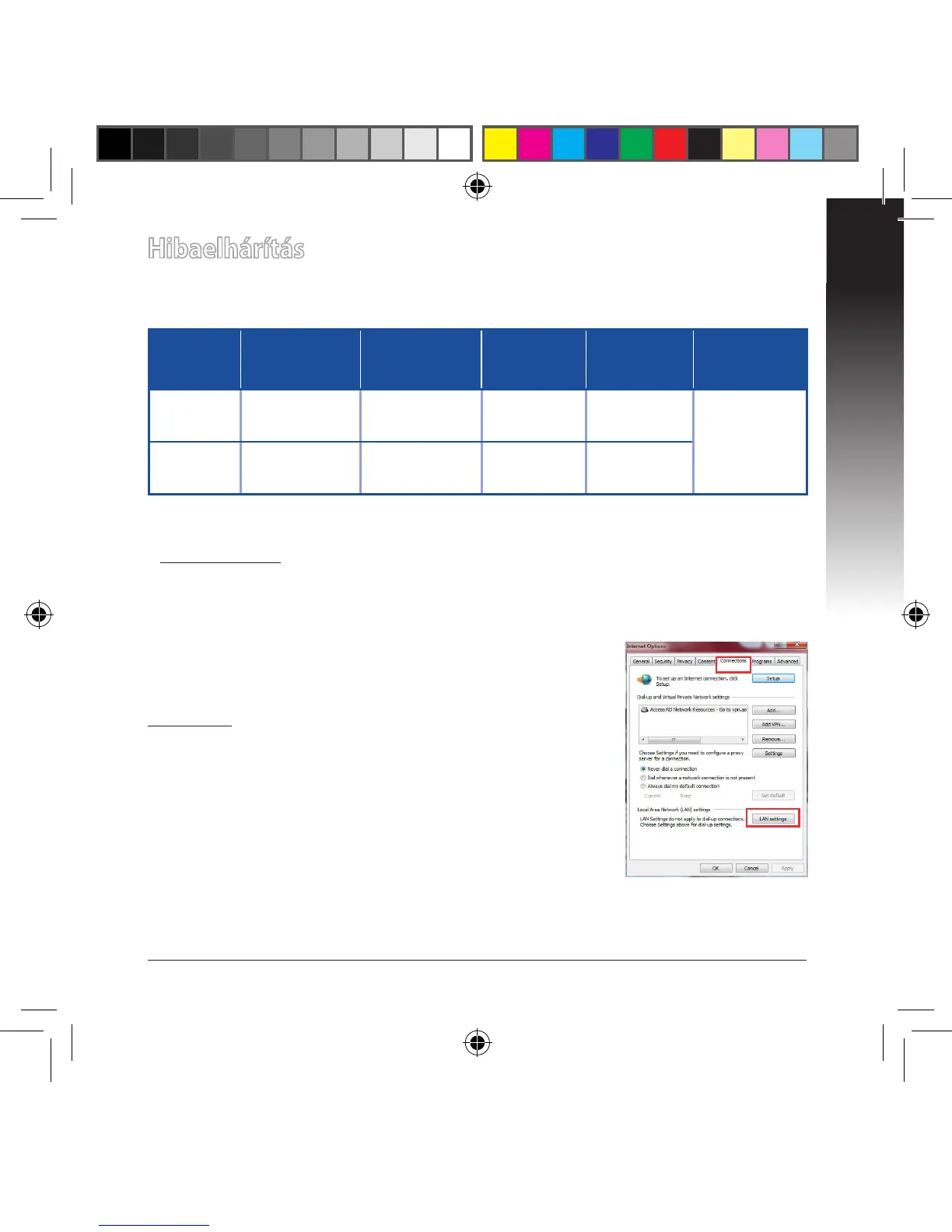 [LAN] beállítások) képernyőn szüntesse meg a Use a proxy server for your LAN