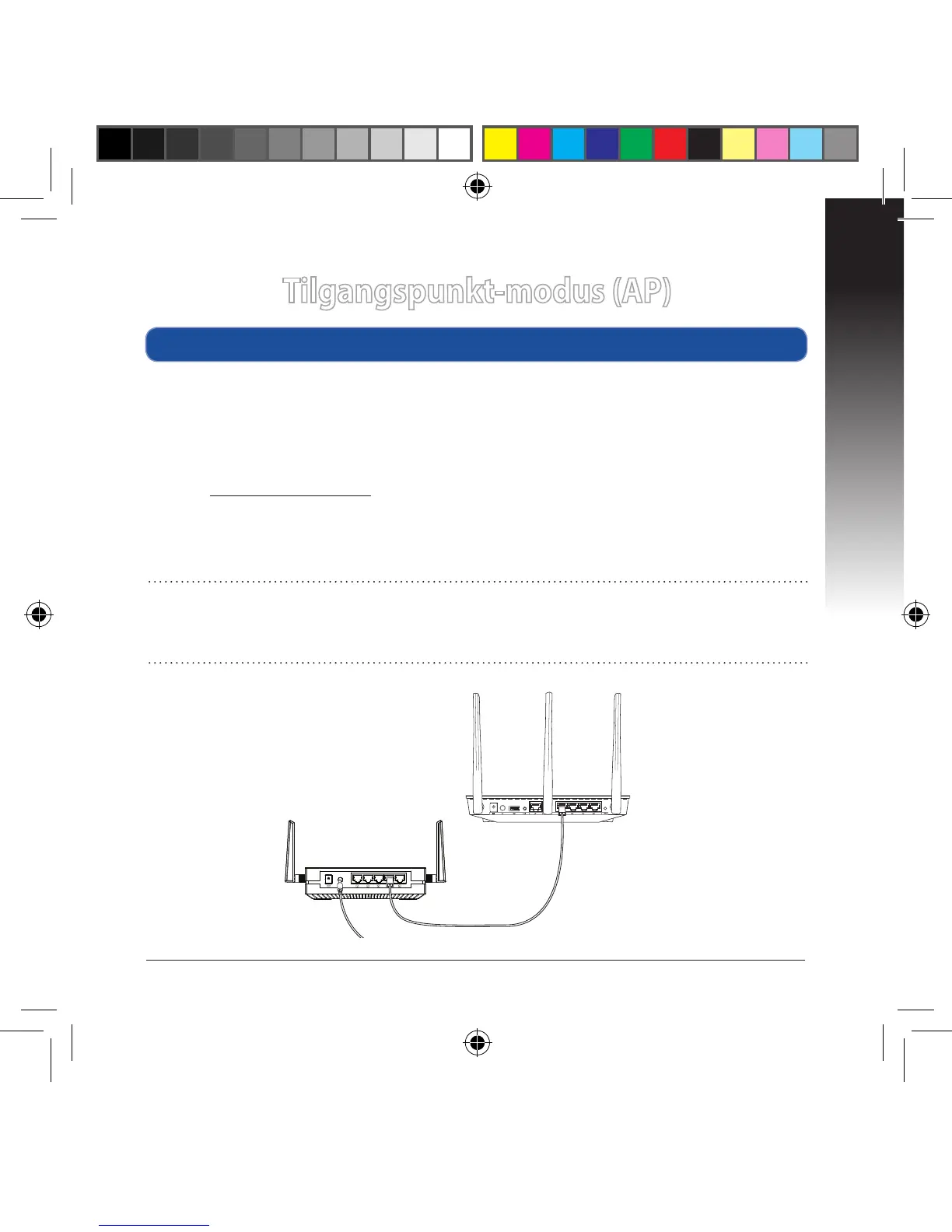• Sørg for at du kobler EA-AC87 til ruterens LAN-port før du setter opp.