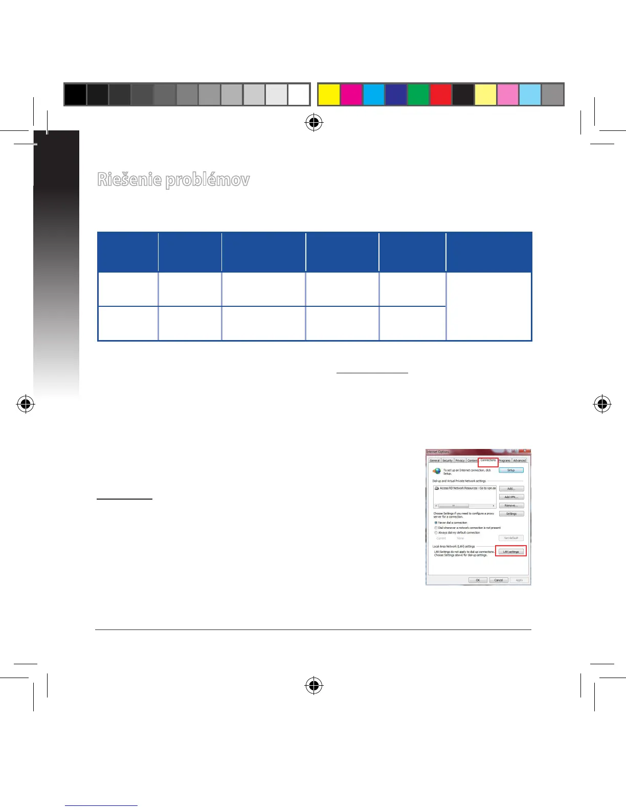 Internet) > karta Connections (Pripojenia) > LAN settings