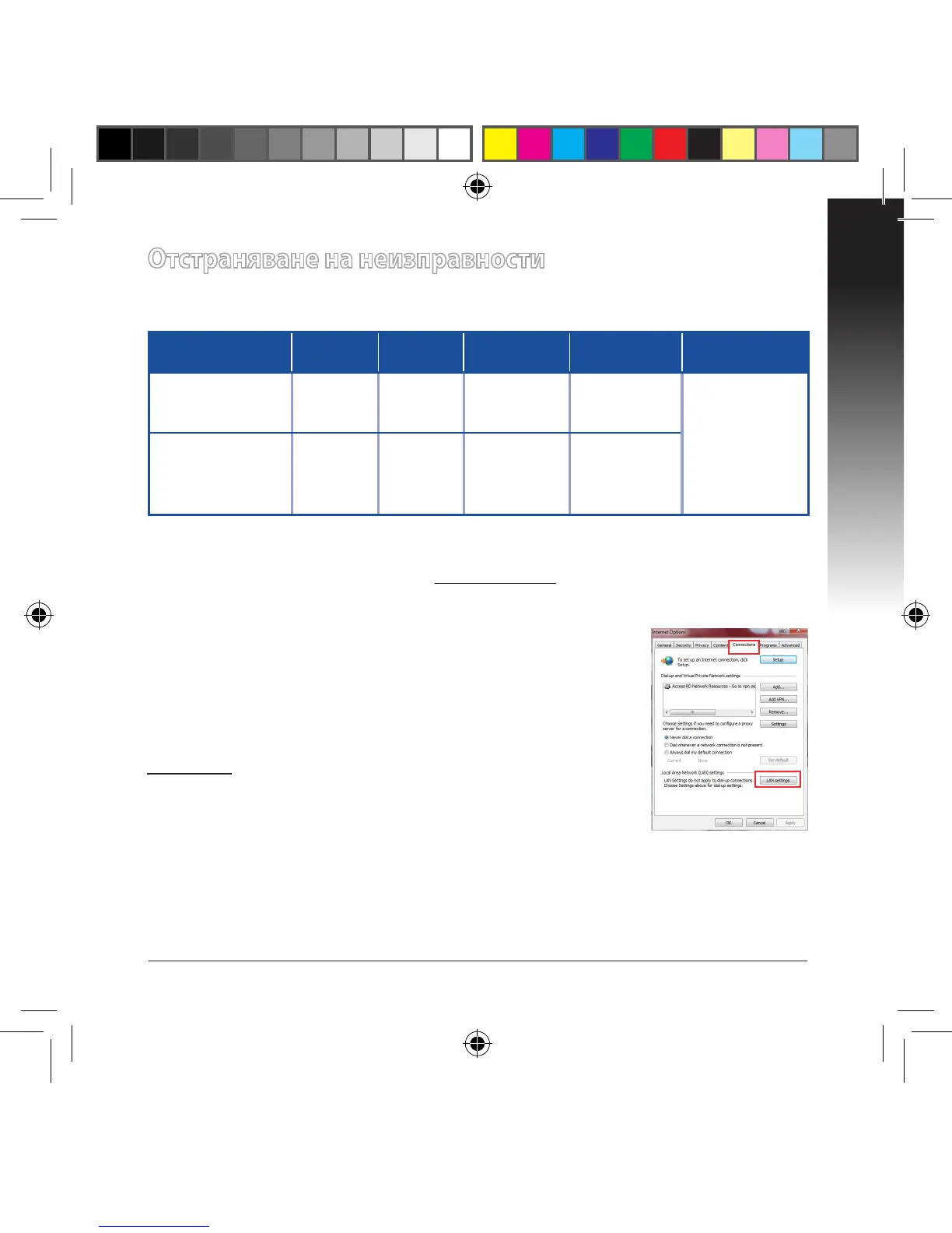 раздел Connections (Връзки) > LAN settings (LAN настройки).