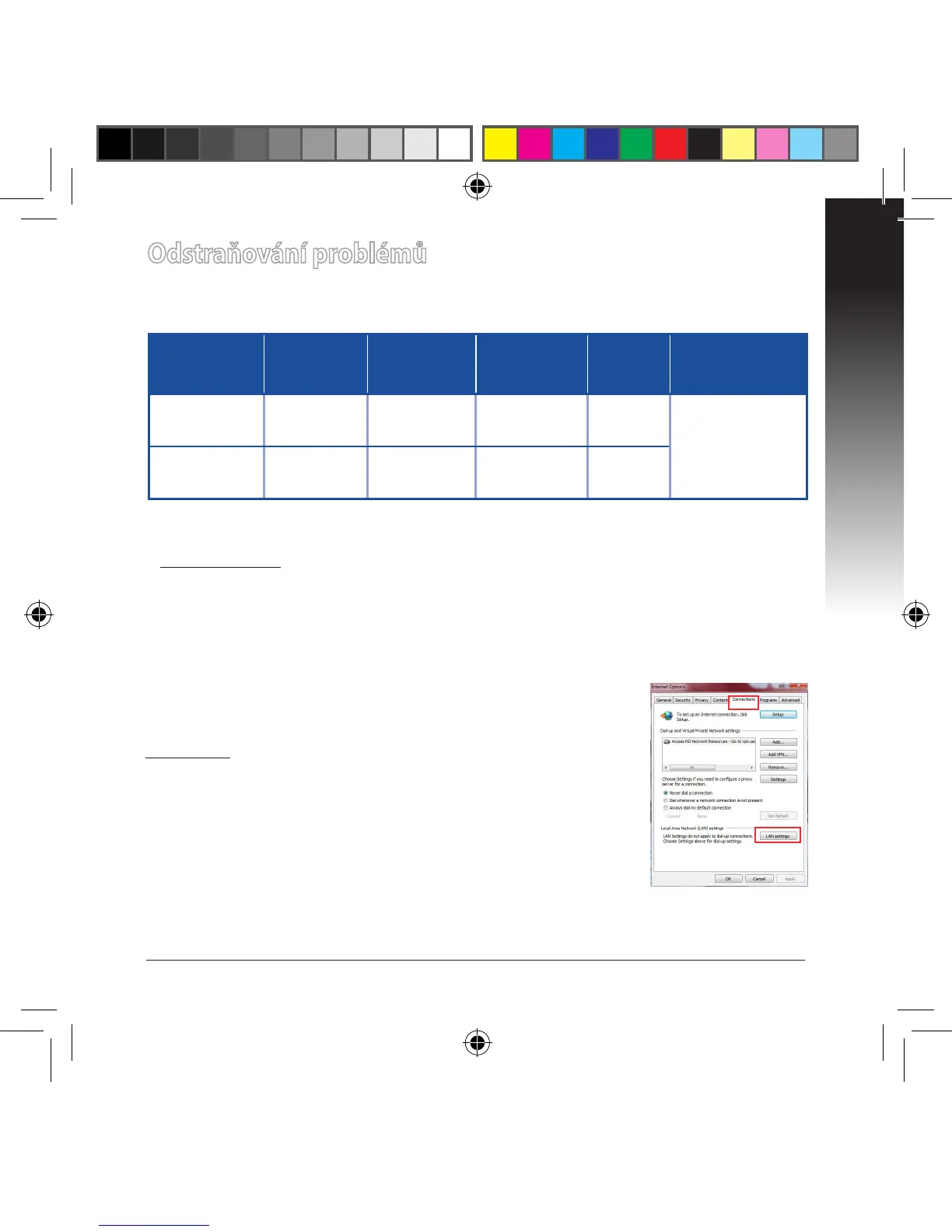 Internetu) > na kartu Connections (Připojení) > LAN settings