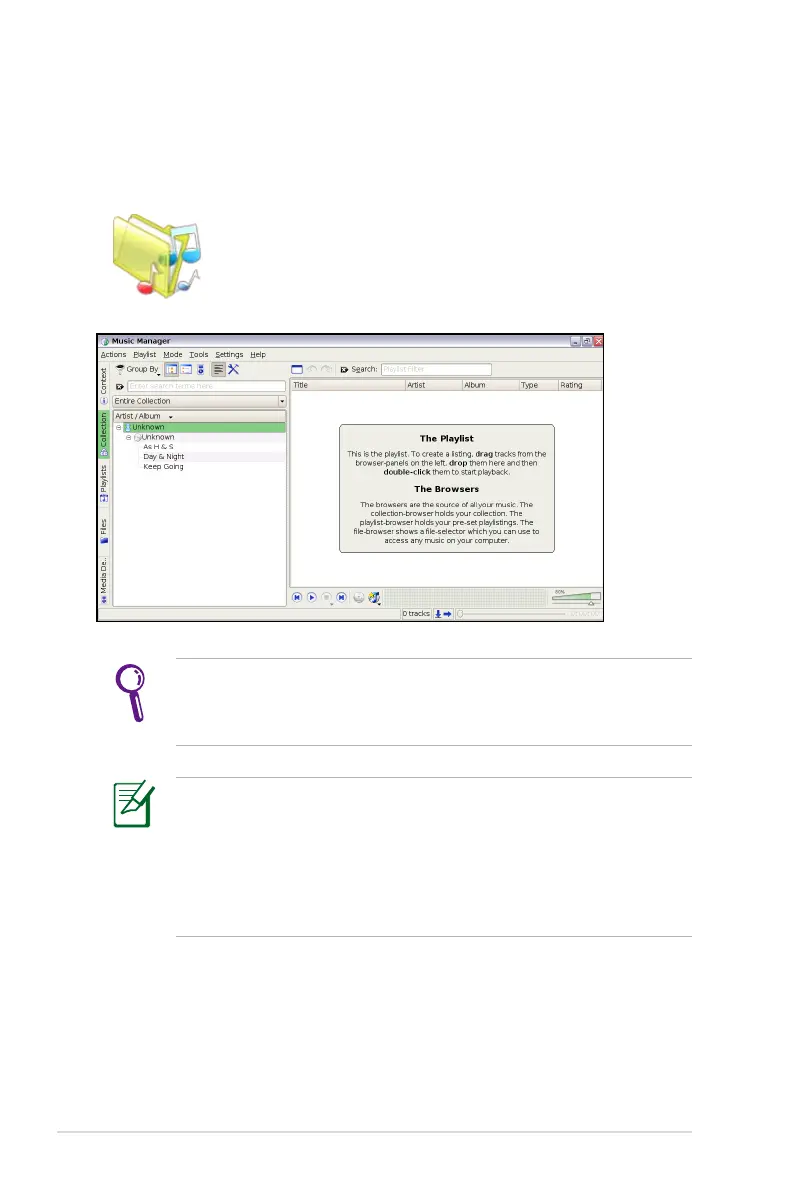 • Closing the main window only minimizes the music manager