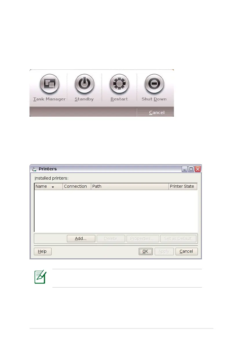 standby, restart, or shut down the system.