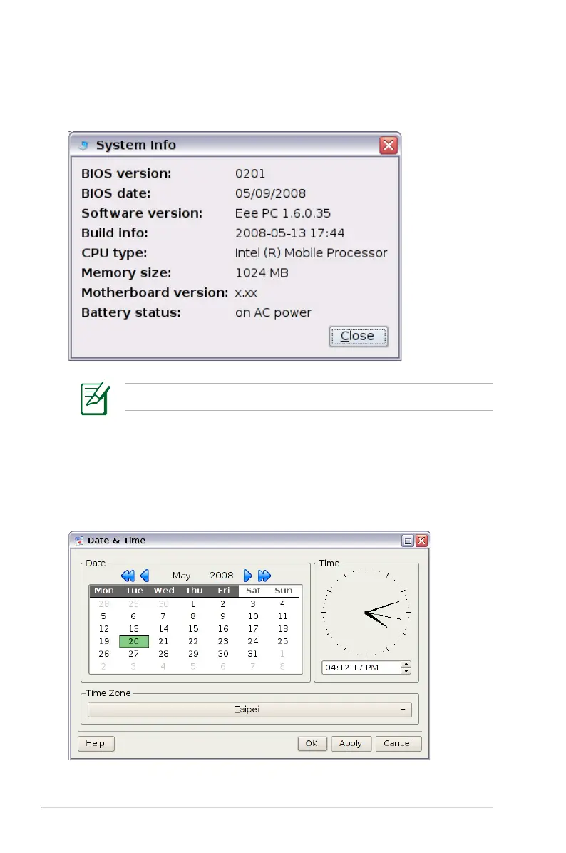 This option displays the system information of your Eee PC.