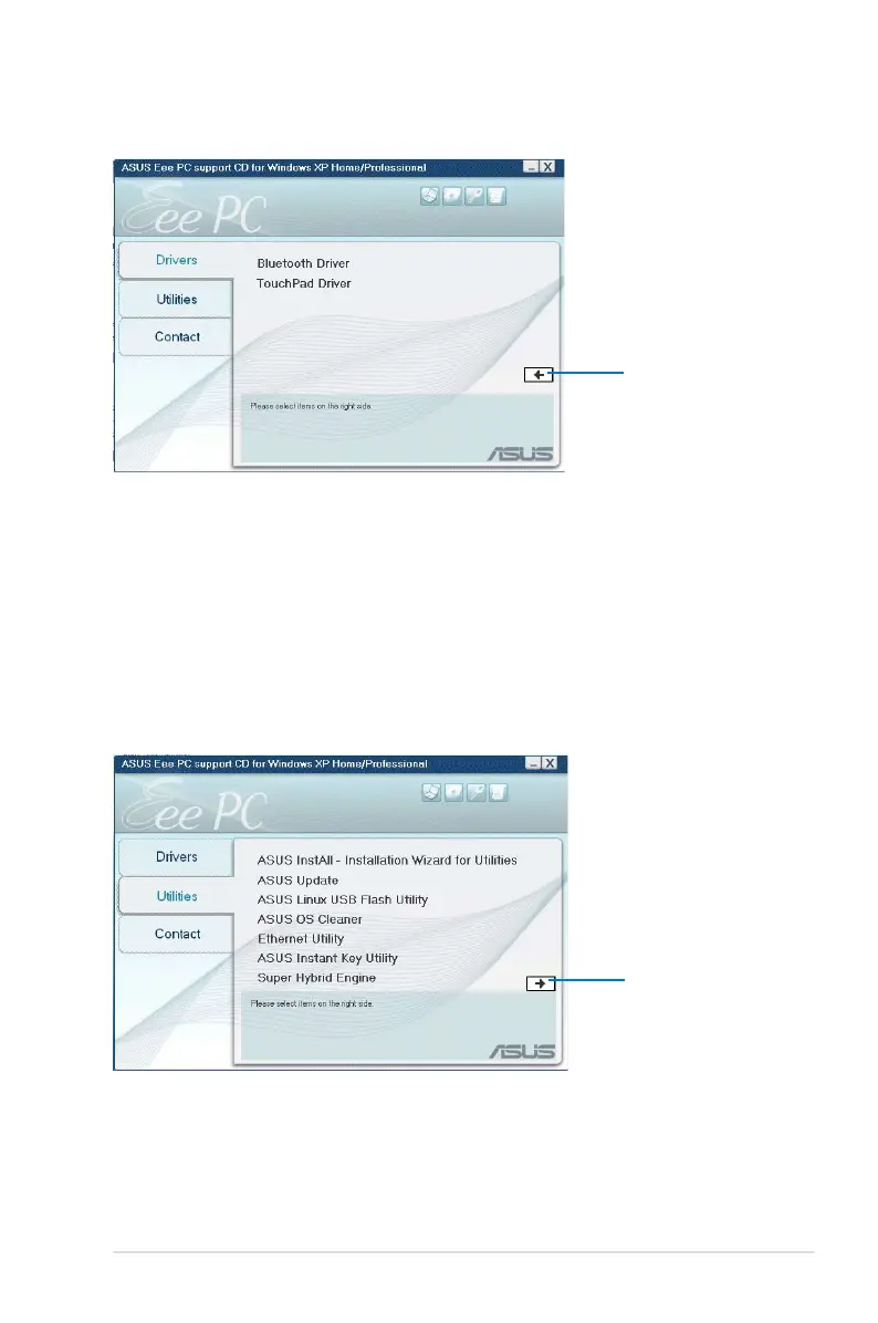 The Utilities menu shows the applications that the Eee PC supports.