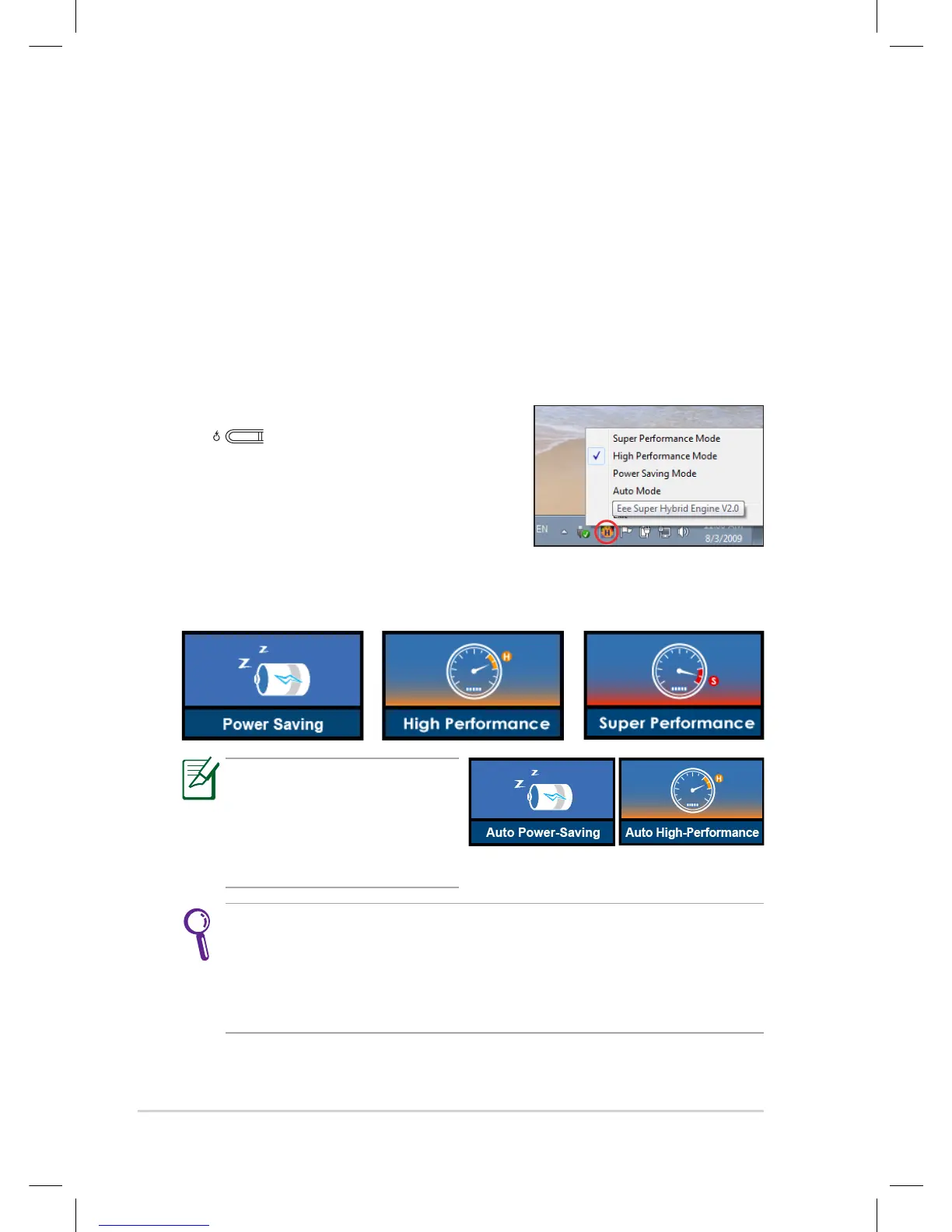 • Click Start > All Programs > ASUS > Eeepc> SuperHybridEngine.