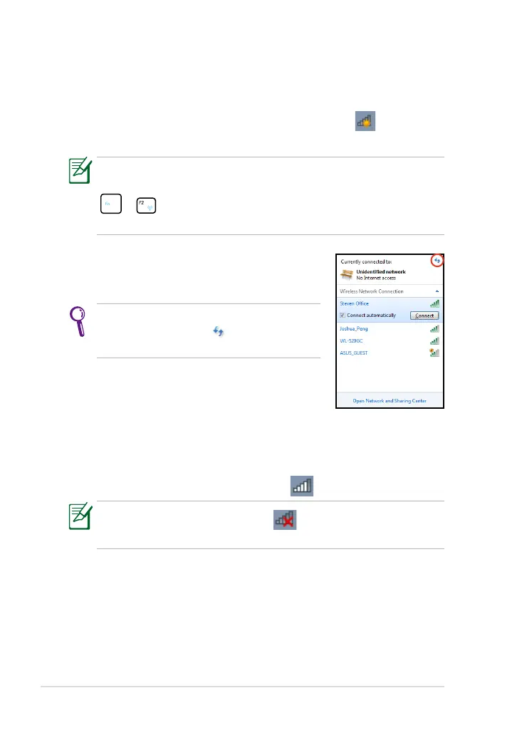 the Notification area, activate the wireless LAN function by pressing