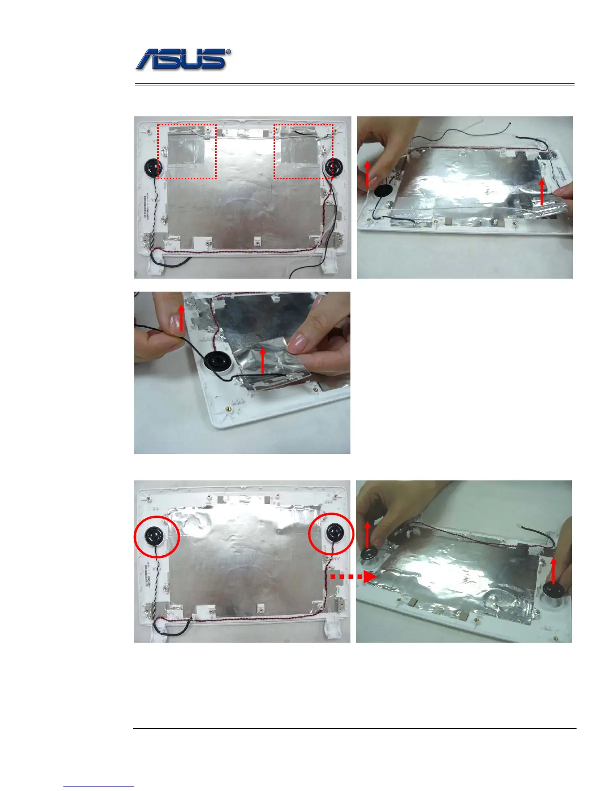 10. Take the speaker cables off cable guides and remove both speakers from their slots.