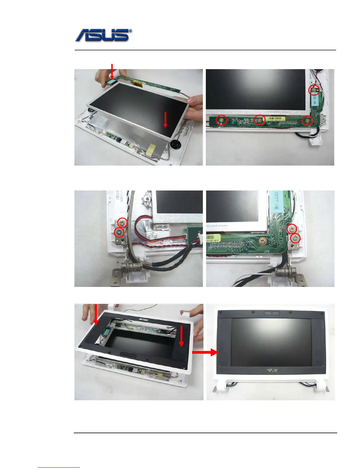 6. Install the LCD panel together with the inverter board on LCD back cover and then secure 4