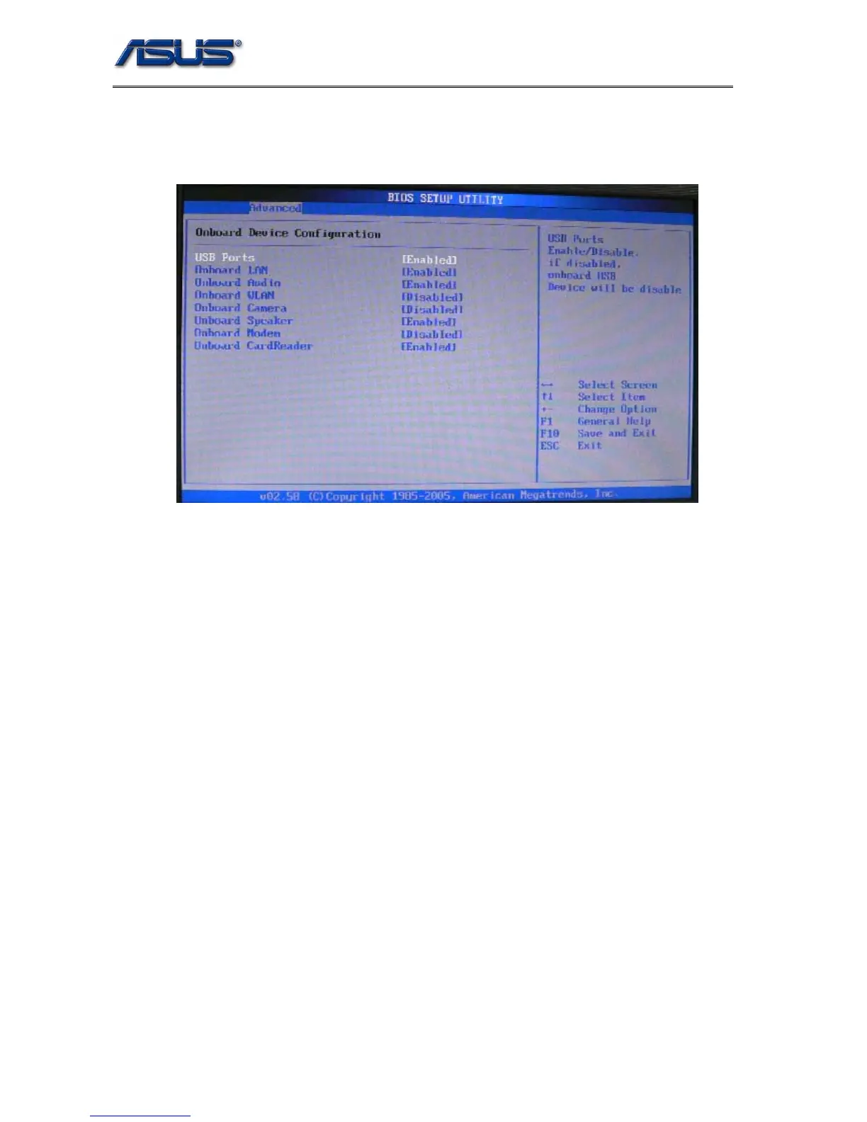 7. Onboard Modem: Onboard Modem enabled/disabled