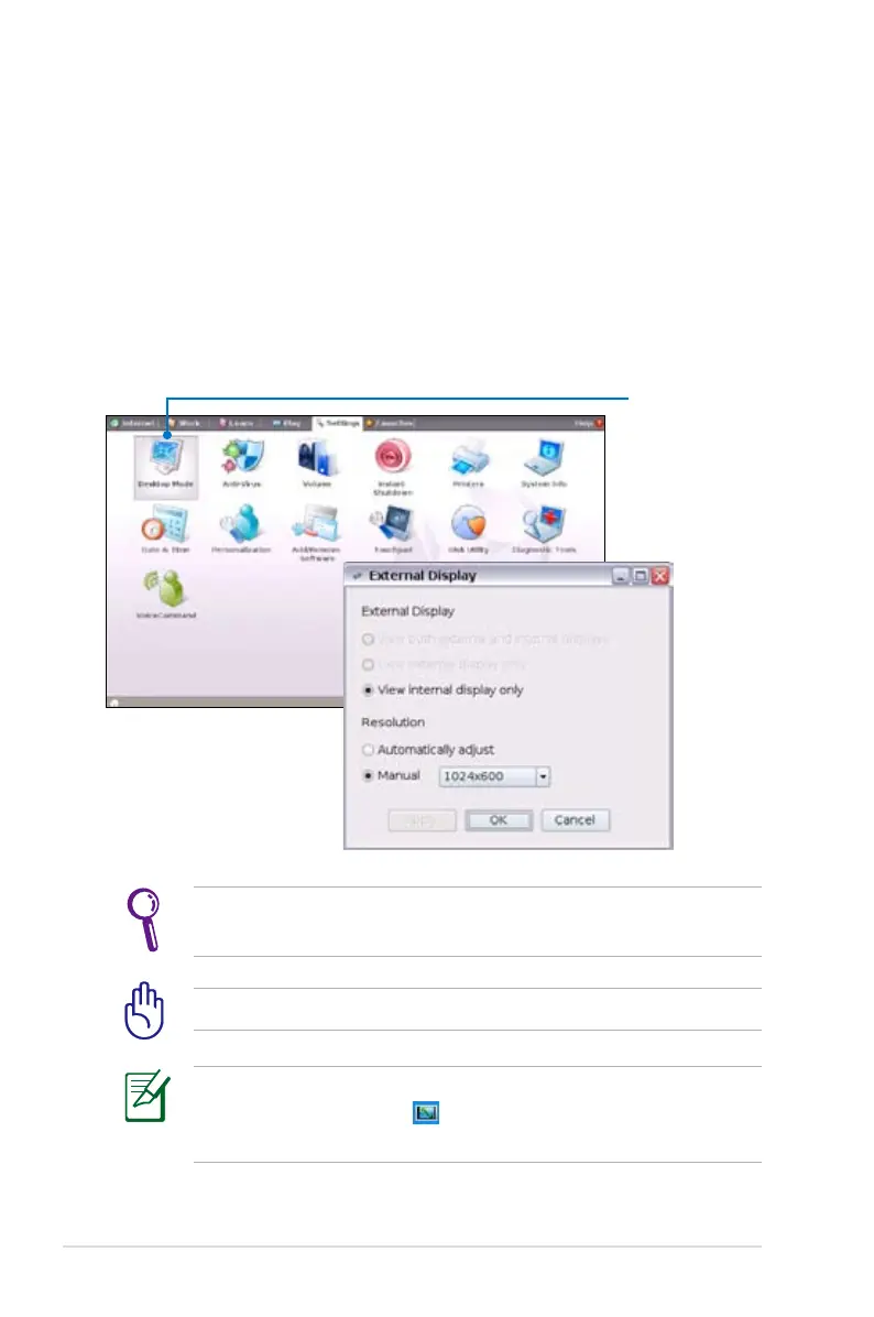 ASUS Eee PC Utility icon in the Notification area to adjust the