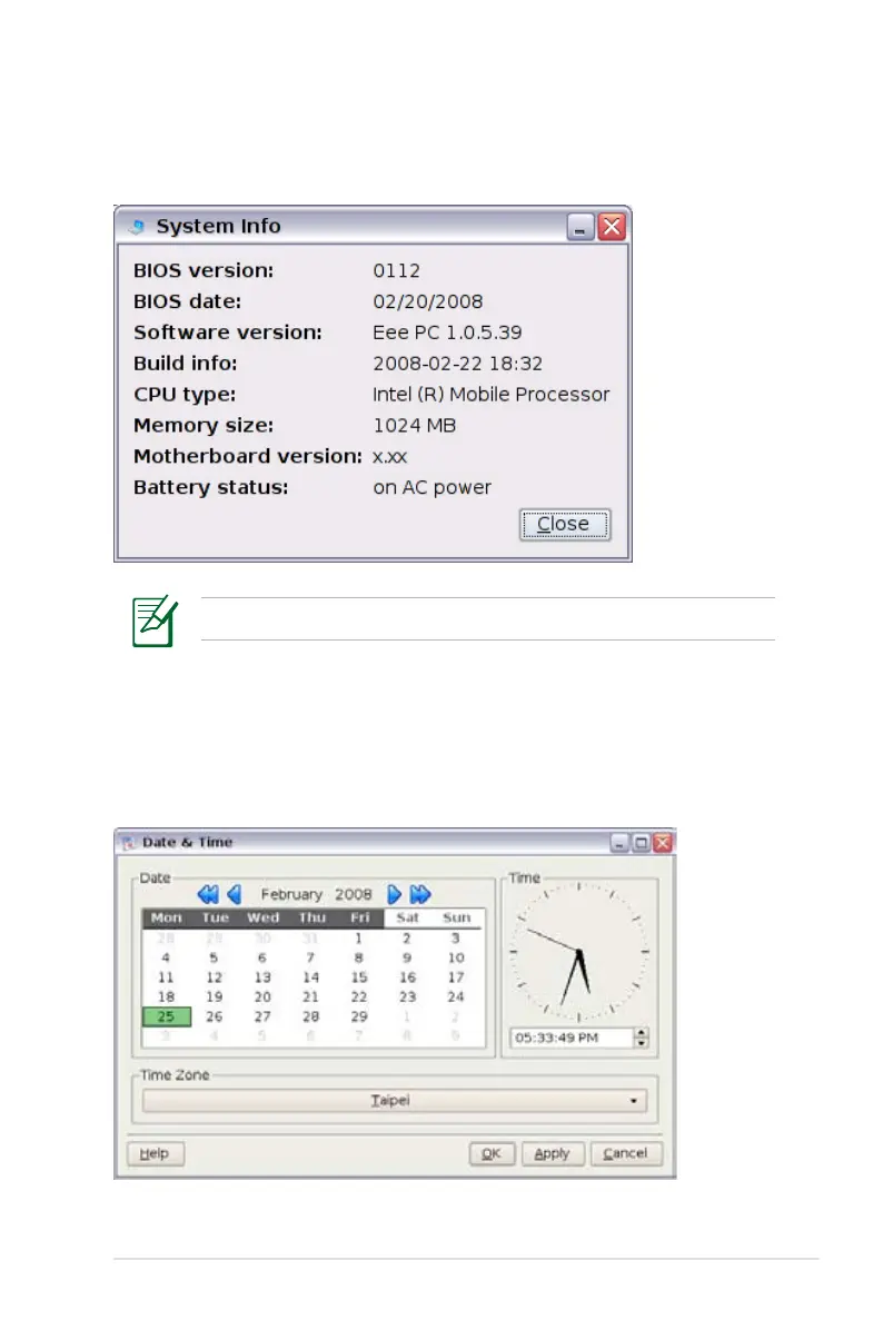 This option displays the system information of your Eee PC.
