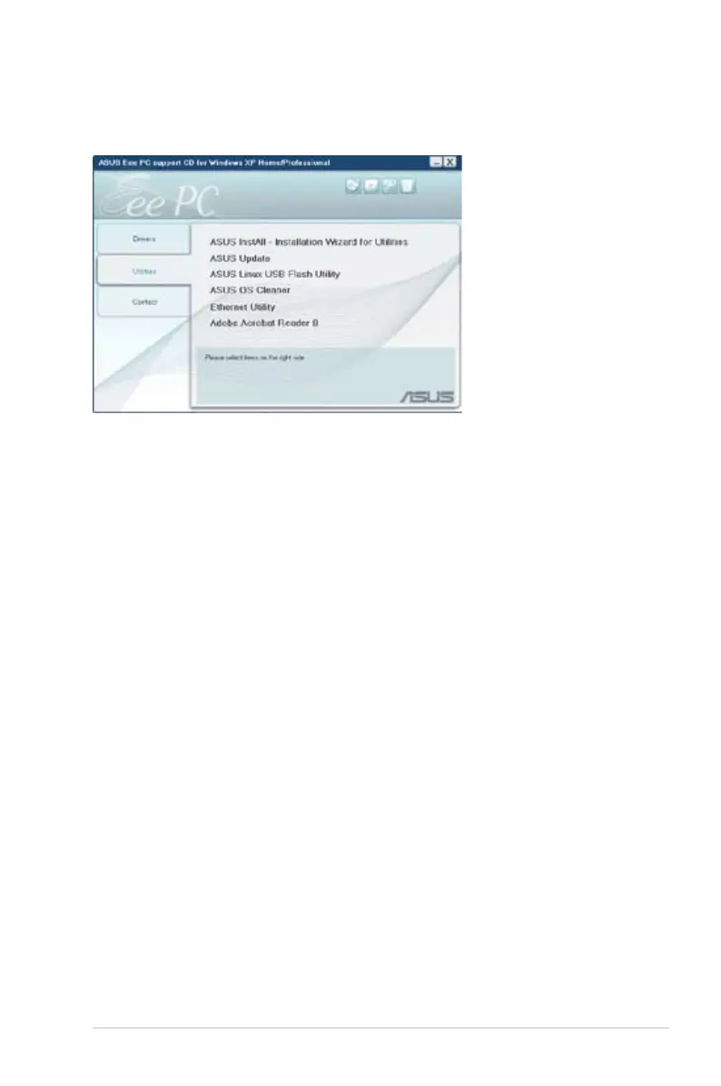 The Utilities menu shows the applications that the Eee PC supports.