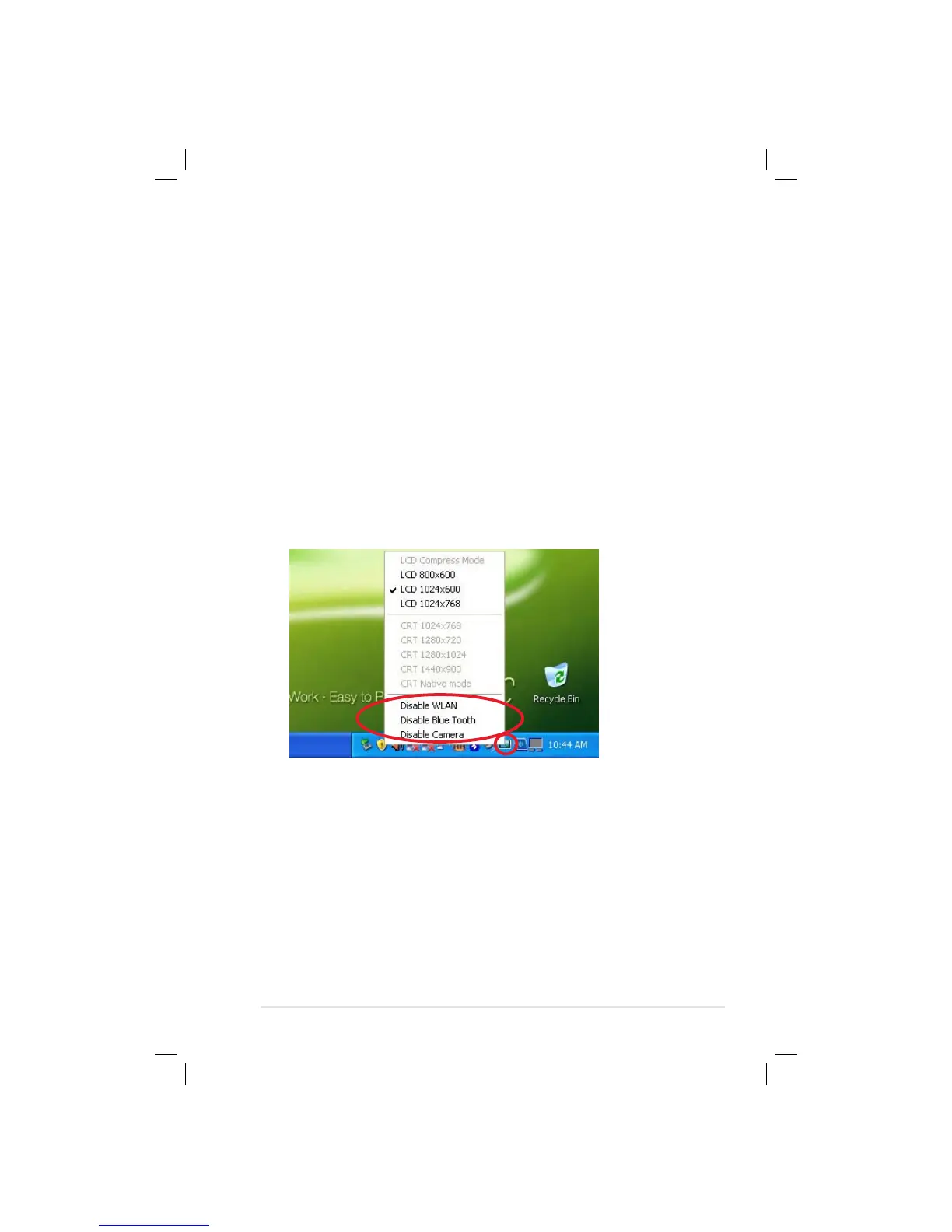1. Right-click the ASUS EeePC Tray Utility icon in the Notification
