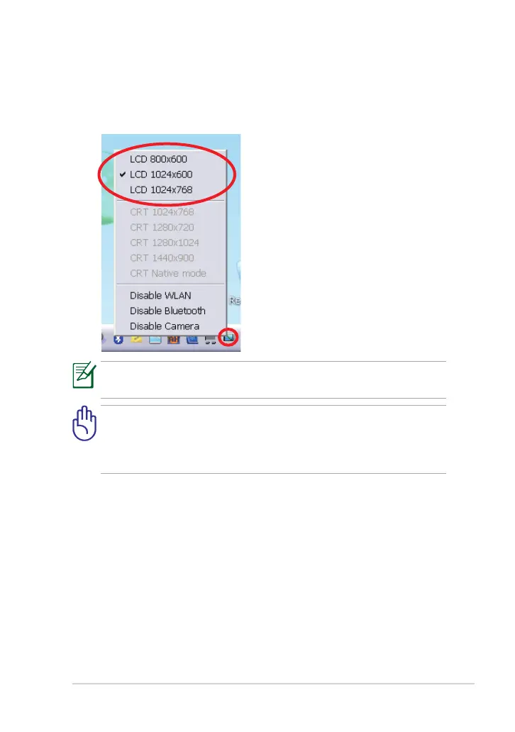 Click the ASUS EeePC Tray Utility icon in the Notification area to adjust the