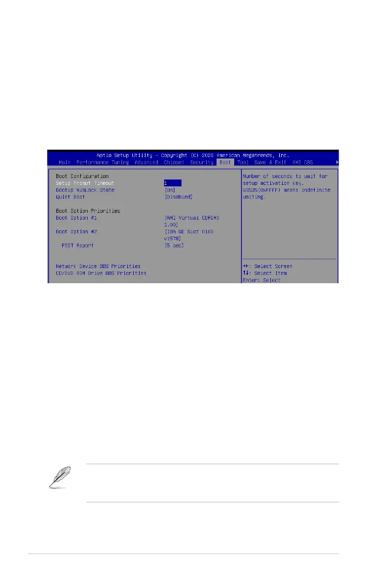 The Boot menu items allow you to change the system boot options.