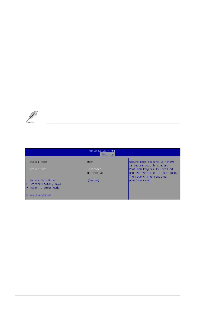 This option will force the system to User Mode, and install factory default Secure Boot key