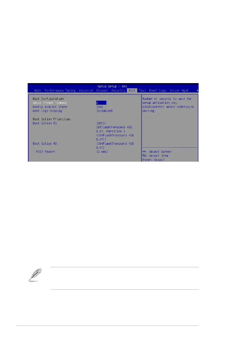 The Boot menu items allow you to change the system boot options.