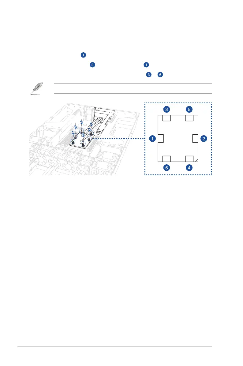 motherboard. The order in which the screws should be tightened is shown both in the