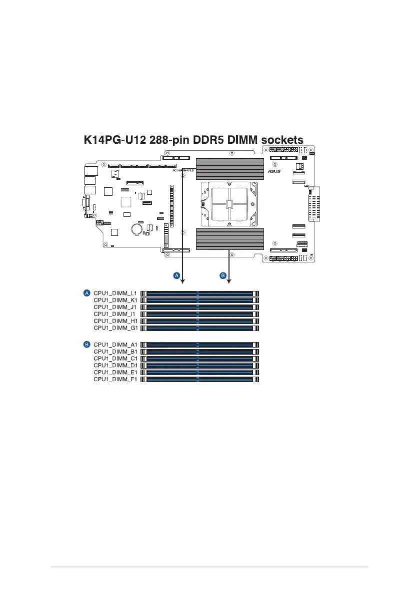 The figure illustrates the location of the DDR5 DIMM sockets: