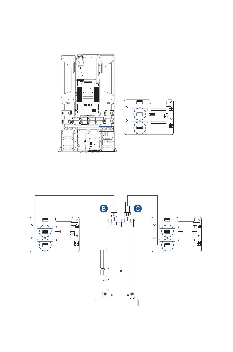 c. Connect the right SLIMSAS connector (C) on the RAID card to
