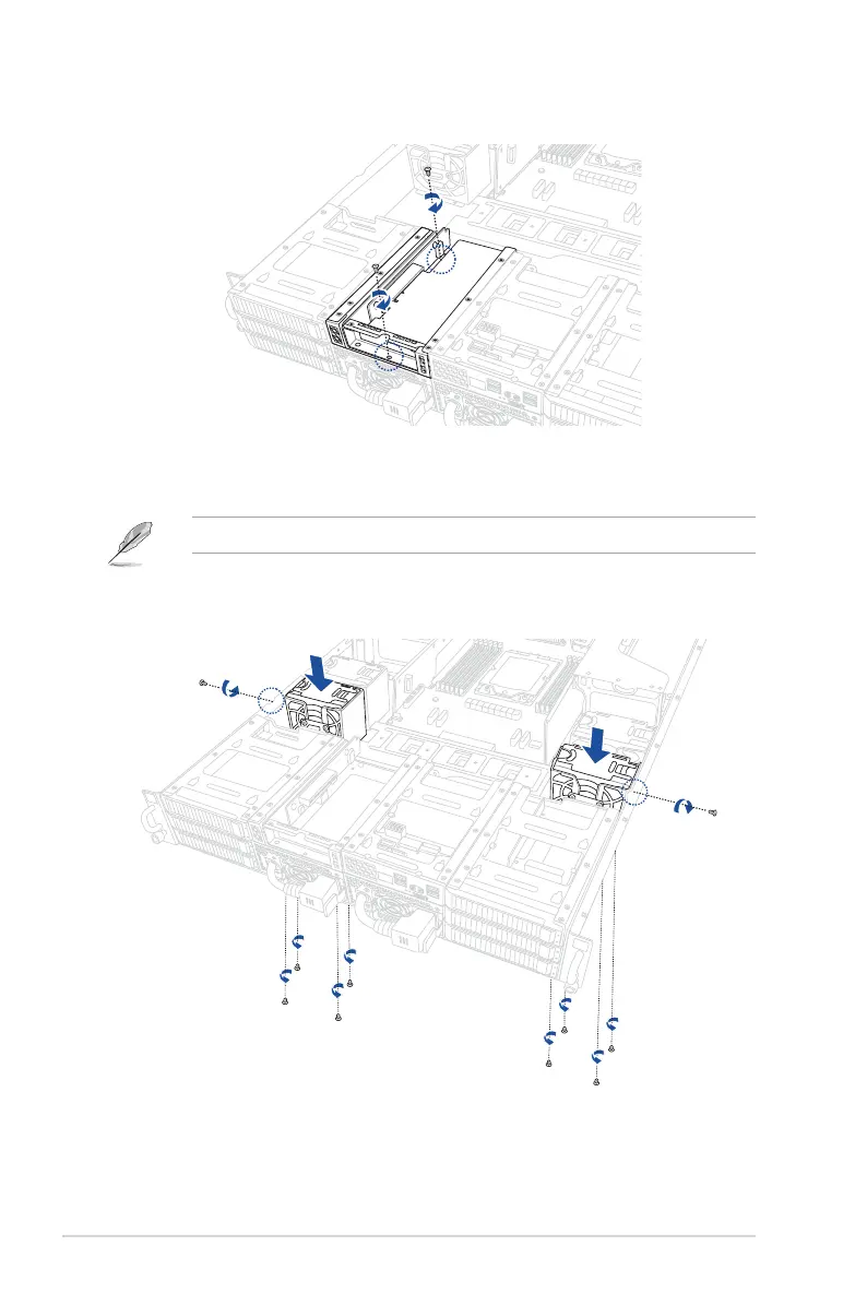 12. Align and install the two (2) fans and fan cages, then secure it using the ten (10)