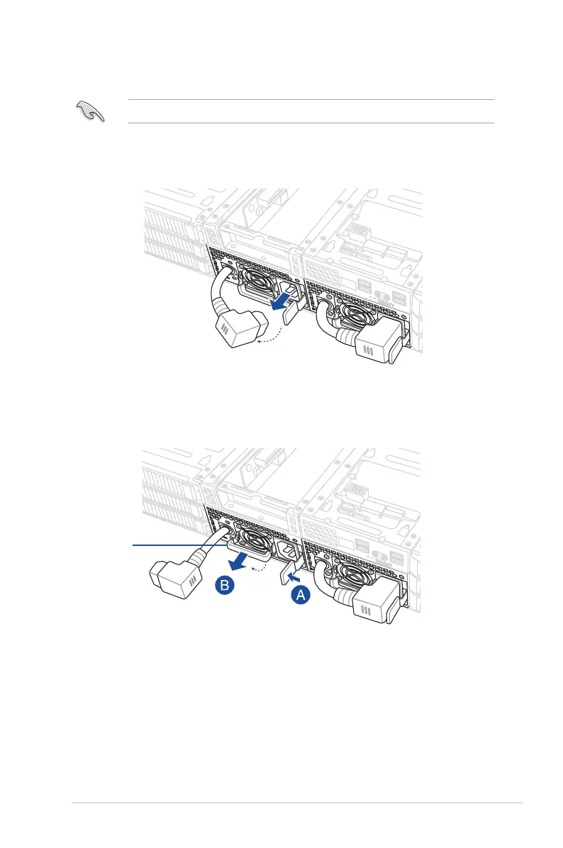 3. Hold the PSU lever, press the PSU latch (A), then carefully pull the PSU out of the