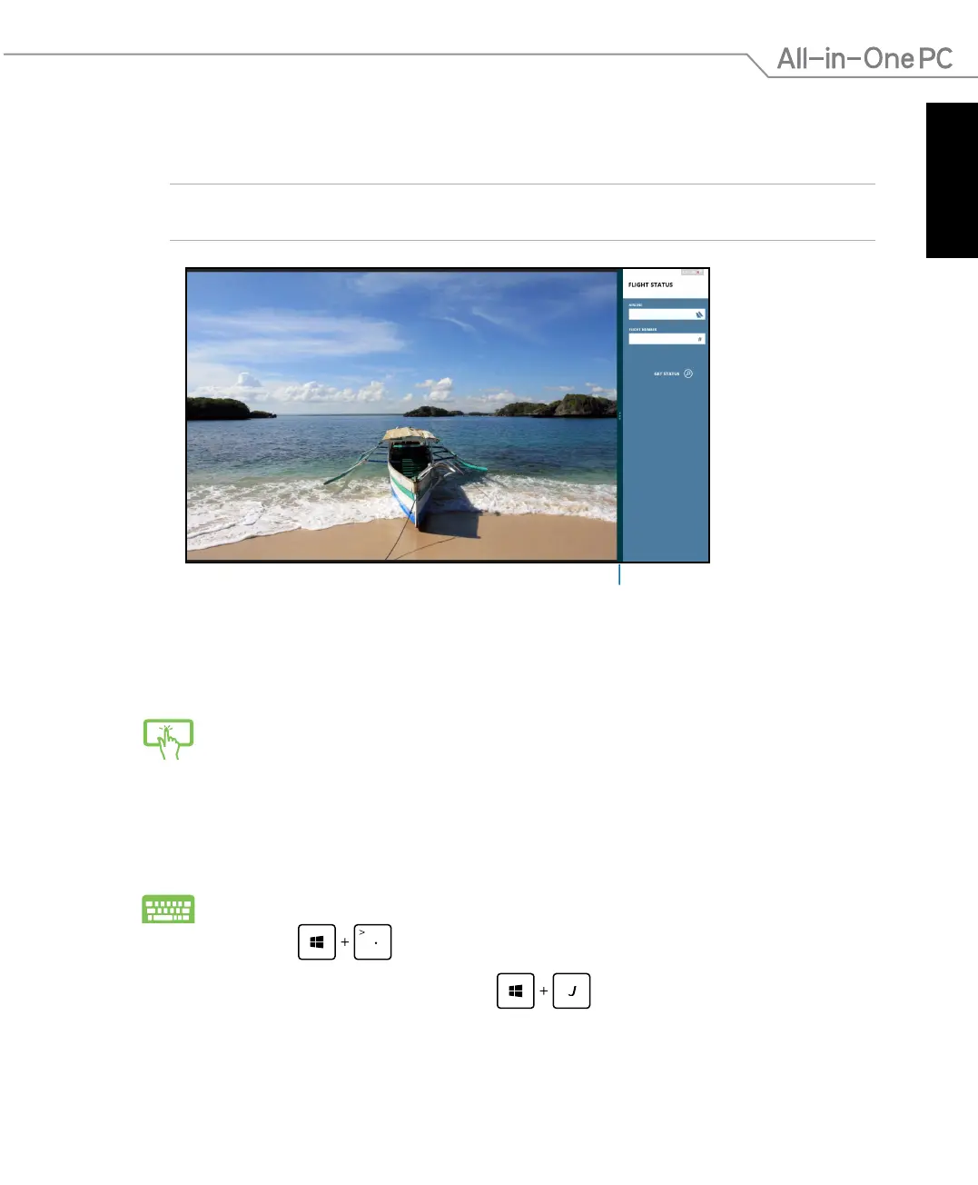 Perform the following steps to activate Snap using your All-in-One PC’s touchscreen or