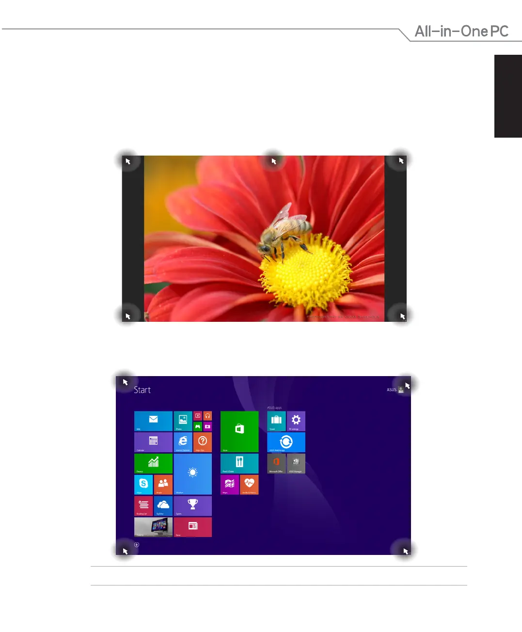 Onscreen hotspots allow you to launch programs and access your ASUS All-in-One PC settings.