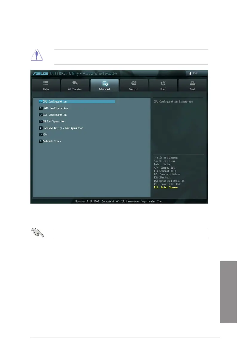 Prenez garde lors de la modication des paramètres du menu Advanced. Des valeurs