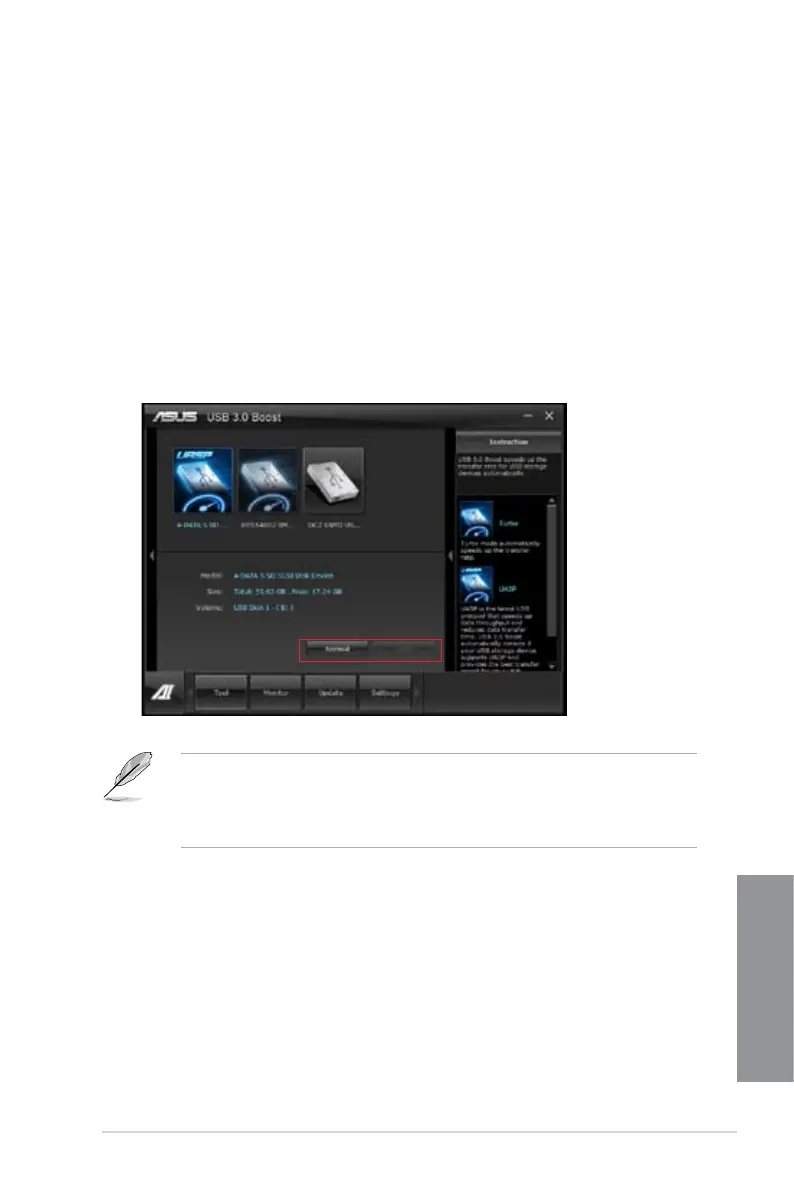 to Turbo mode or UASP mode (if UASP is supported by the USB 3.0 device).