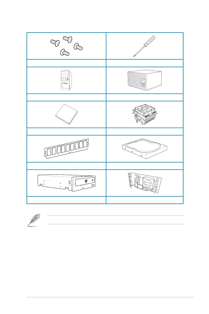 The tools and components in the table above are not included in the motherboard package.