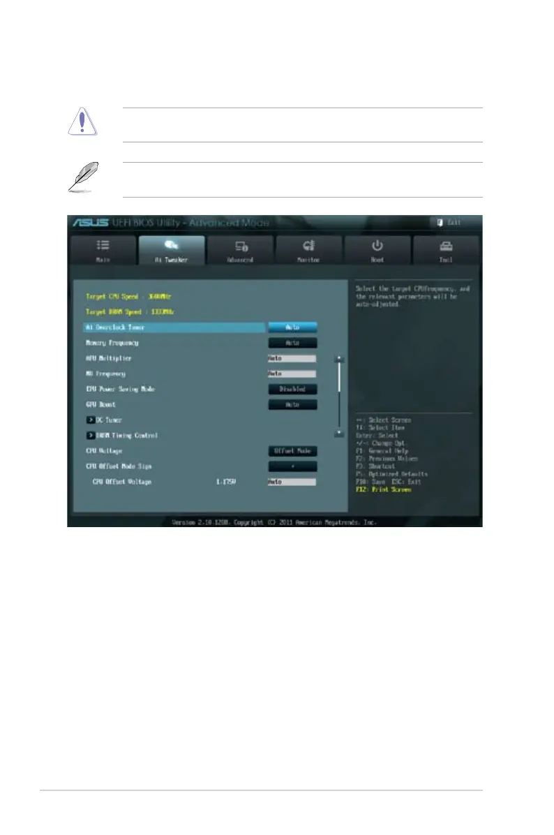 The Ai Tweaker menu items allow you to congure overclocking-related items.