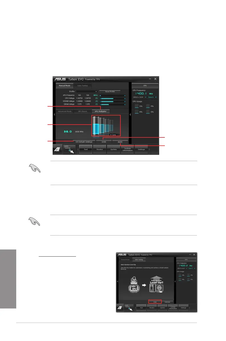 • Set the APU Multiplier item in BIOS to [Auto] before using the APU Multiplier function in