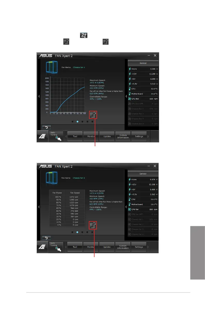 Click the Fan Information button to see the details of each detected fan. You can click on