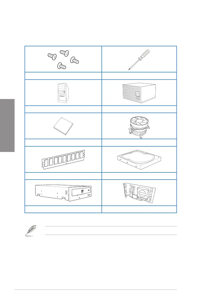The tools and components in the table above are not included in the motherboard package.