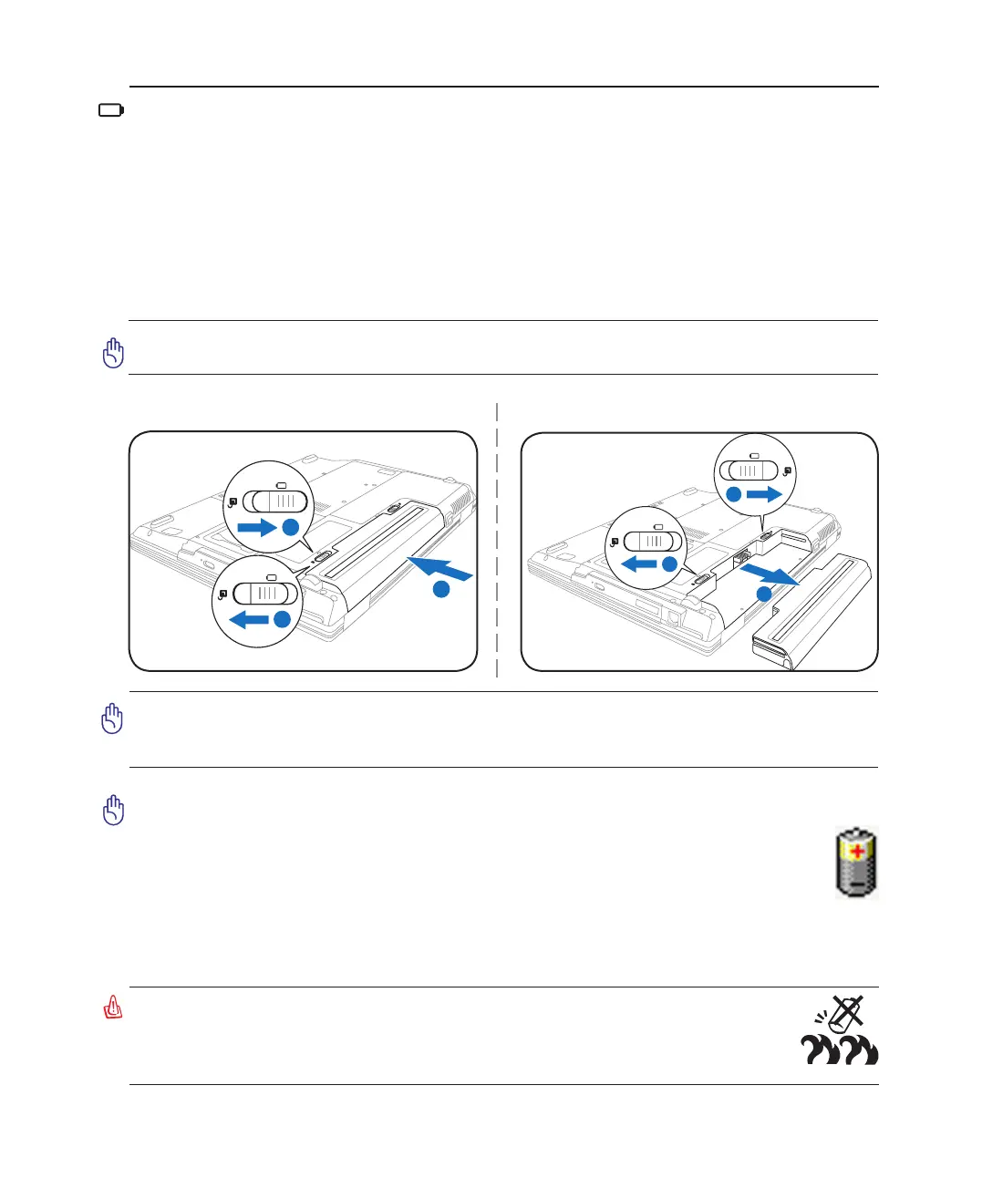 IMPORTANT! Never attempt to remove the battery pack while the Notebook PC is