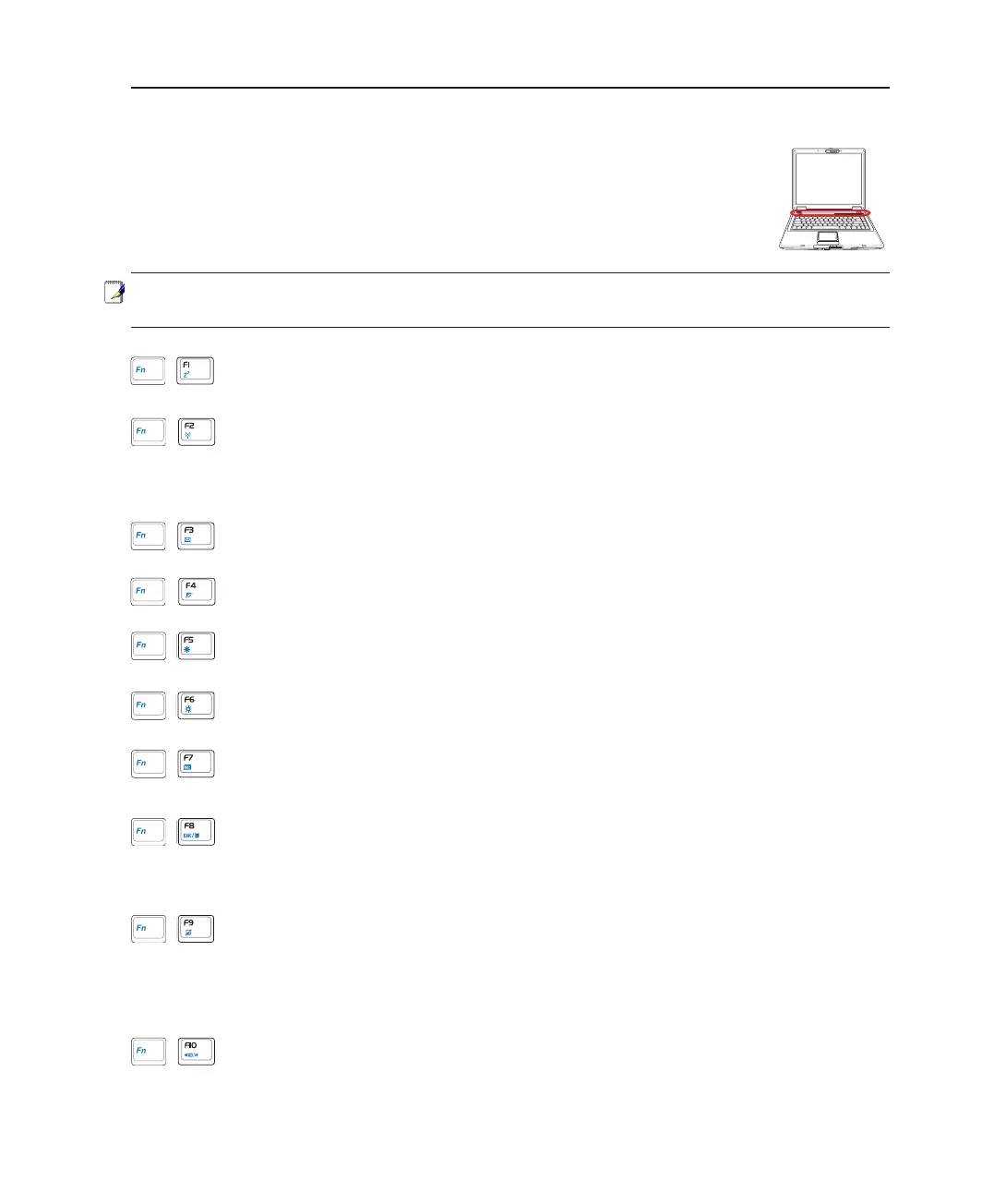 NOTE: The Hot Key locations on the function keys may vary depending on model but the