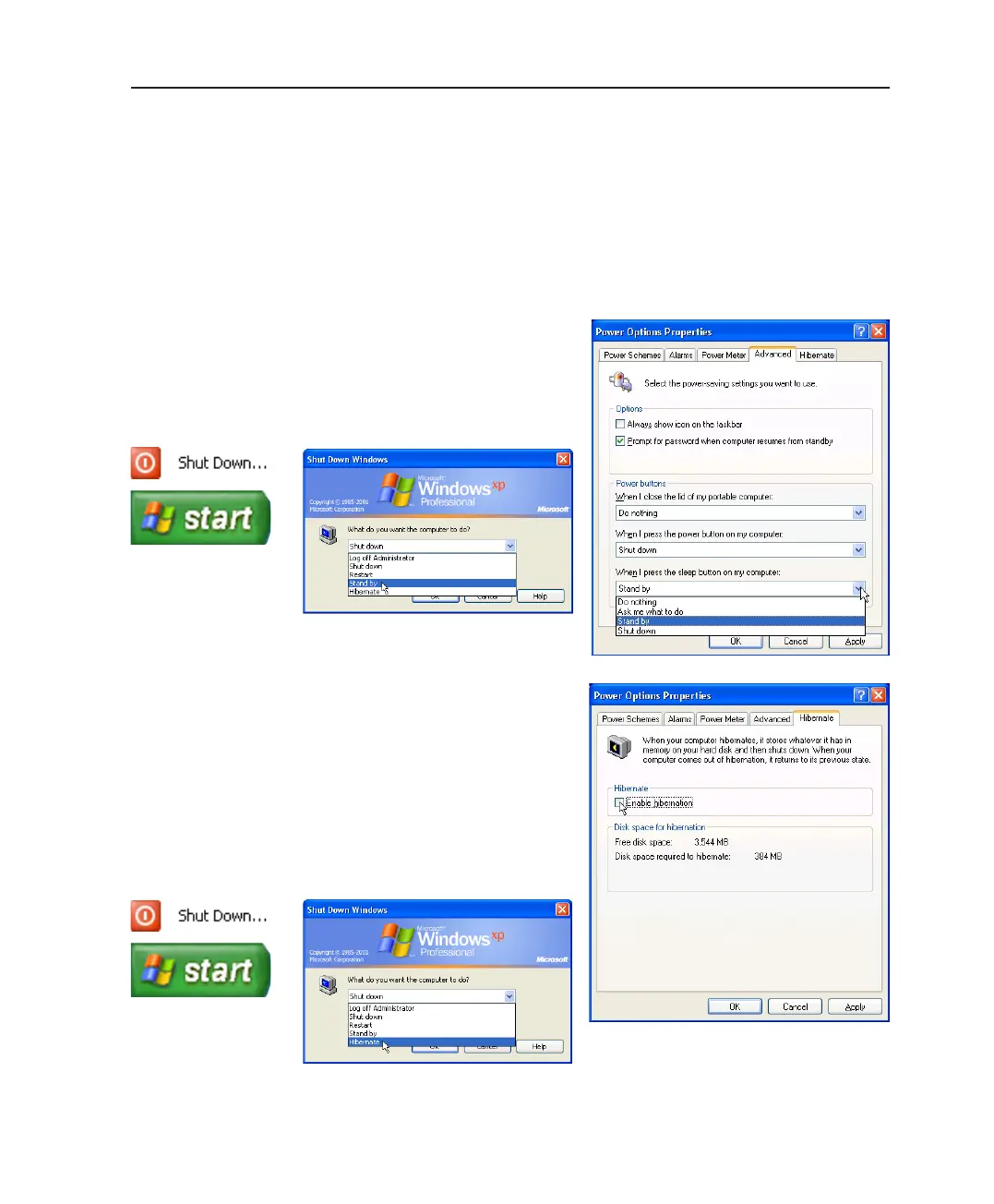 pressing the power button, or activating sleep mode. “Stand by” and “Hibernate” saves power when
