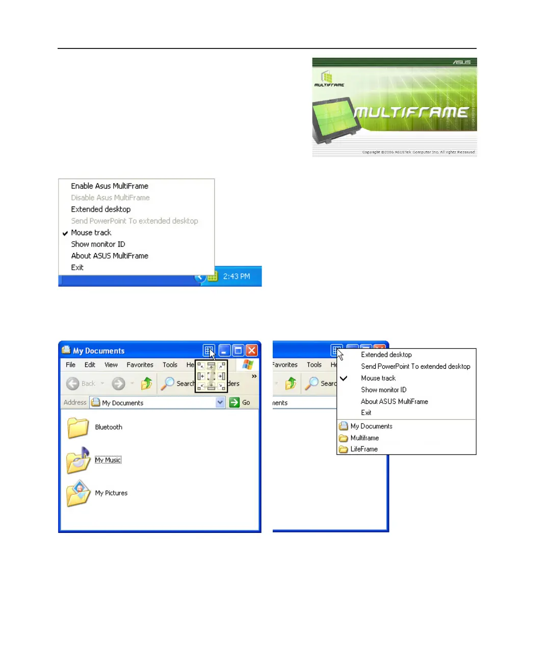Right-click the ASUS MultiFrame icon on the taskbar for a
